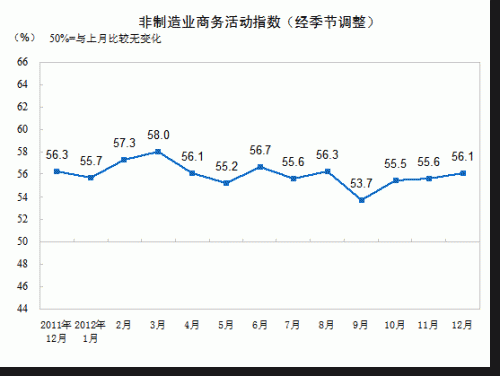 统计局:2012年12月中国非制造业商务活动指数为56.1%