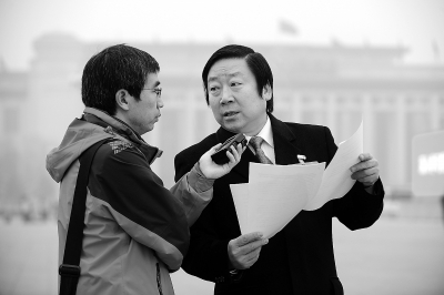 昨天下午,全国政协委员潘庆林在天安门广场接受记者采访。 新华社发