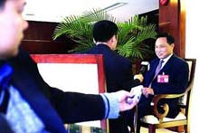 一家电视台约好委员进行采访,一位报纸记者不失时机地将自己的采访机伸了过去,就这样“蹭”出一条新闻。由于委员们都很忙碌,在休息时又不好打扰,所以这种“蹭”采访的情况在会场经常出现。大家笑言,这叫做“新闻资源共享”。